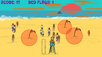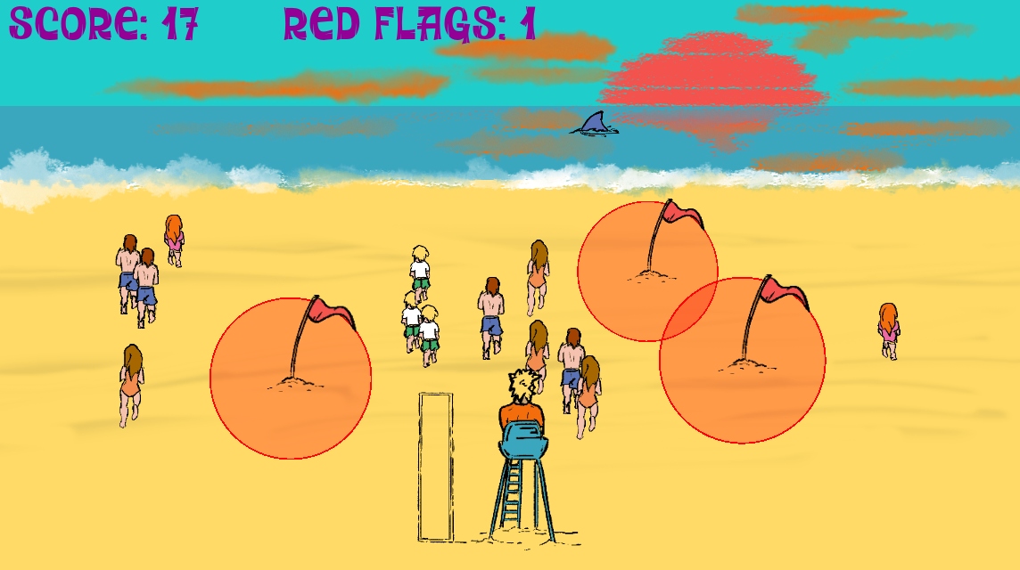 - With the mouse you throw red flags (5) on the beach to stop the swimmers.